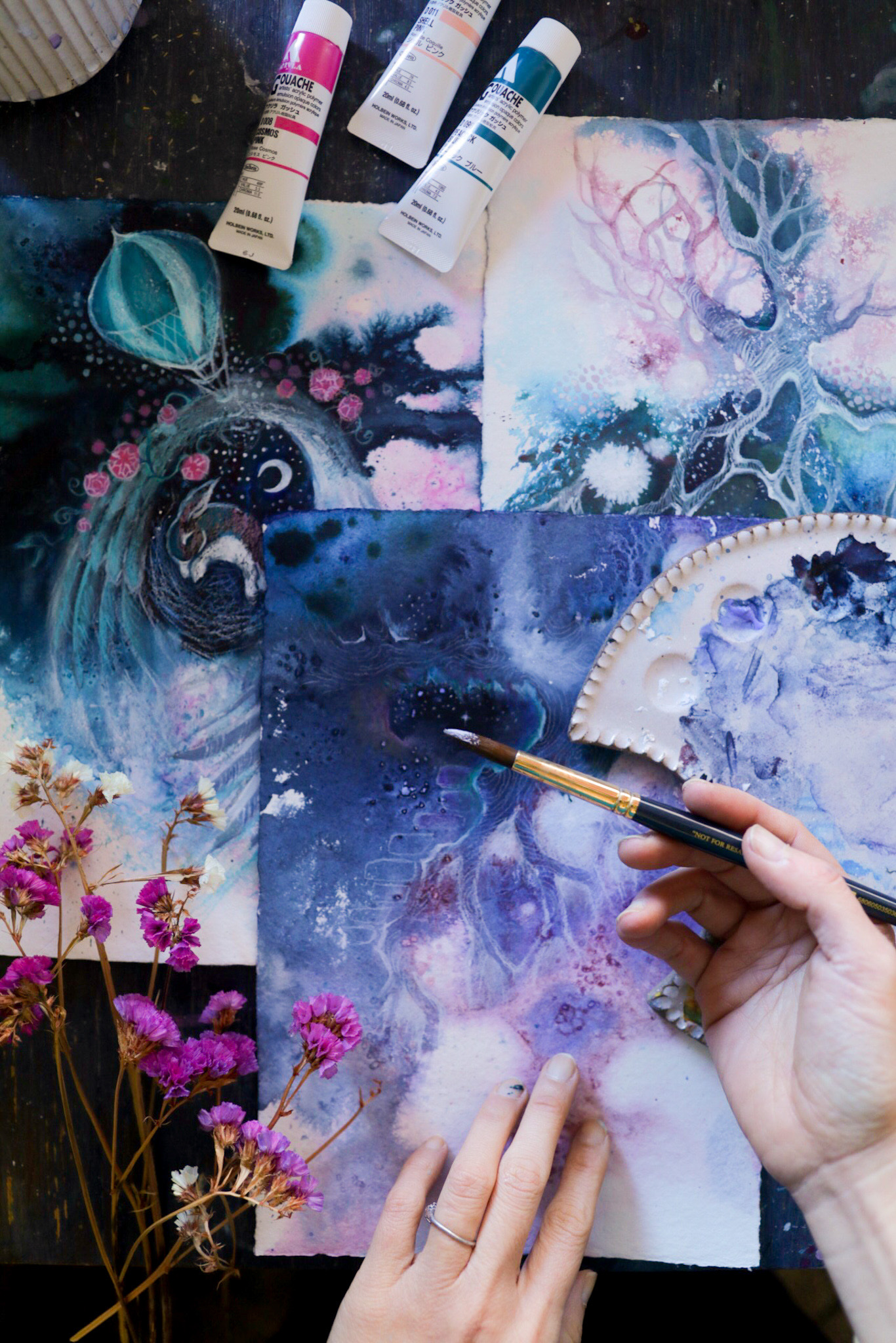 What I did was I got so excited about this brand new creative opportunity that it never had, like in, in a long time that I was working all the time. So much, so many ideas reporting out of me and trying to keep up with a studio and printing, uh, had to hire someone and I got of overwhelmed. And then three years in, I burned out really badly. I had set up this whole studio around the idea of creating and chanting experiences and being enchanted. And I was painting these invitations about people’s amazing outdoor destination weddings, but I wasn’t feeding myself creatively soulfully. I didn’t have time to do anything. I think the straw that broke the camel’s back was when we were on holiday. I think we were all camping or something. And I was worried that my studio assistant couldn’t get in because I forgot to give her the key.